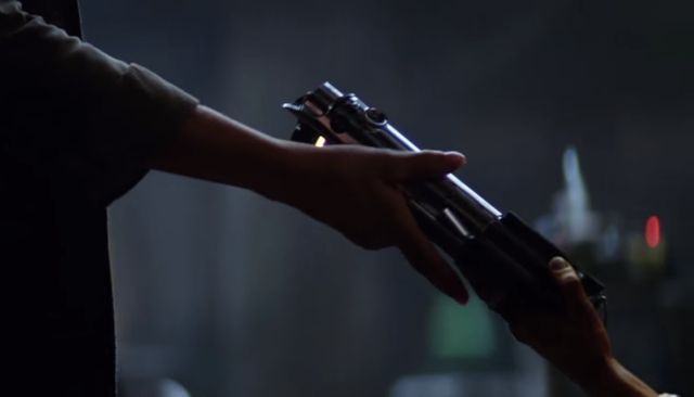 Во втором трейлере седьмых «Звездных войн» синий меч Скайуокера вновь появился на экране: его кто-то передавал кому-то (возможно, принцессе Лее).
