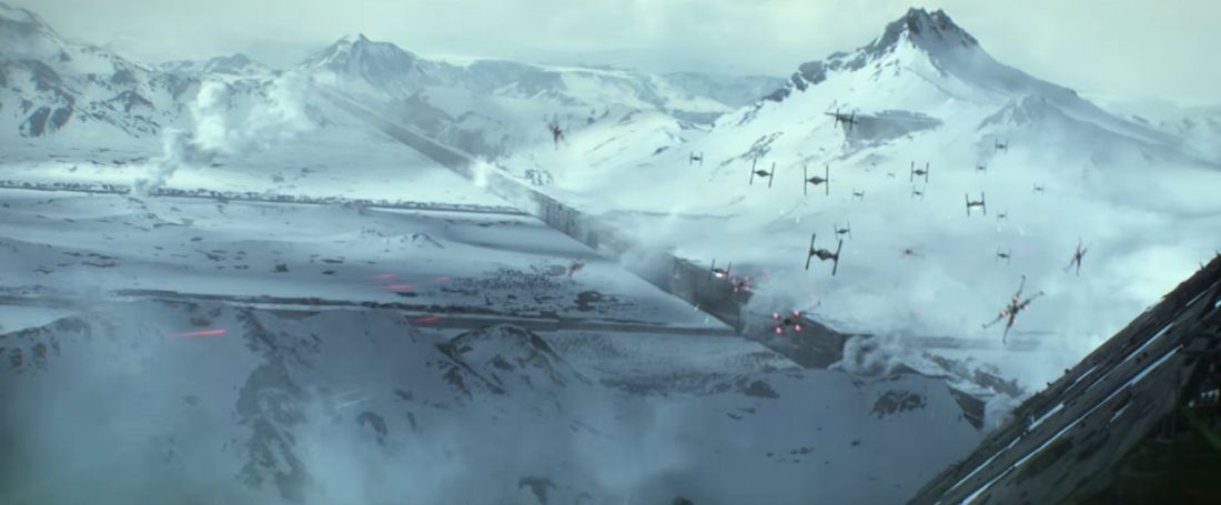 Но самая интересная ситуация с заснеженной планетой, которую показывают в сцене с армией штурмовиков, стоящих в строю.