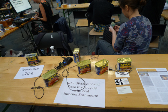 В один из дней конференц-зал фестиваля оказался оккупирован черным интернет-рынком Yami-ichi. Это японское изобретение, путешествующий по миру фестиваль, придуманный художником Exonemo и коллективом IDPW.org, на котором художники продают и обмениваются в офлайне артефактами интернет-культуры. На рынке можно было прикупить спама, лайков красивых девушек, связать для своего интернет-кабеля «пальто» или получить из банана уникальный пароль для интернета, который суперсложно взломать (как, впрочем, и абсолютно невозможно запомнить).