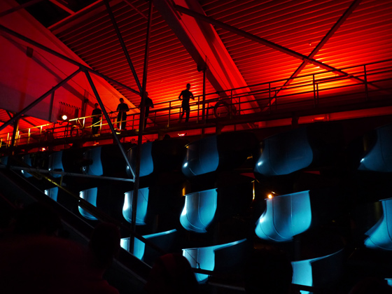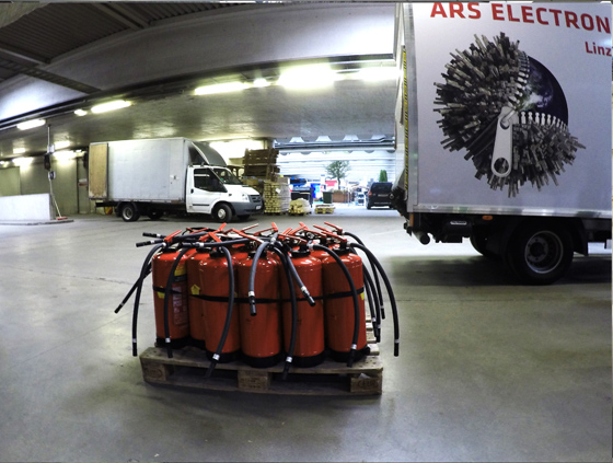 © Tom Mesic Вручение золотых ник Prix Ars Electronica Например, за несколько недель до фестиваля пришлось полностью менять концепцию вечерней программы, открытия и логики передвижений людей во время вечерних перформансов, так как железнодорожный монополист, которому принадлежала часть здания, отказался выдавать разрешение на нахождение людей на его территории из соображений безопасности. А официальная бумага о том, что посетители фестиваля могут находиться на всех этажах, запланированных для посещения, пришла ровно за 5 дней до открытия фестиваля. За неделю до фестиваля одну из бывших туалетных комнат, в которой уже была смонтирована «межпрограммная» (вспомогательная, работающая с темой здания) инсталляция, в срочном порядке пришлось возвратить обратно в состояние туалета, так как стало понятно, что этих жизненно важных комнаток катастрофически не хватает.