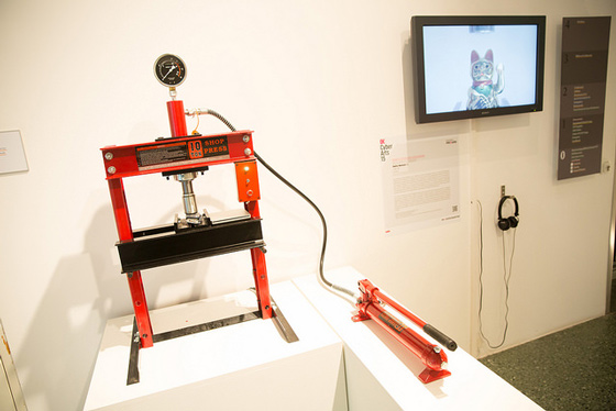 © Tom Mesic Idle Times Алекса Верхаеста Еще один победитель в номинации «Анимация» — интерактивный видеоарт-проект Idle Times Алекса Верхаеста (Alex Verhaest). Этакий АЕС+Ф на бельгийский манер: на экране показывают обработанных компьютерной графикой и снятых в рапиде персонажей, которые сидят за столом, вокруг летают фантастические насекомые, рядом указан телефон, по которому зрители могут позвонить, чтобы один из героев поднял трубку и запустилось действие на экране. Что особенно приятно, на выставке Cyberarts среди победителей Prix Ars Electronica был представлен российский проект Димы ::vtol:: Морозова Oil, который получил почетное упоминание в этом году. Эта работа была показана в начале года в «Гараже»: зрителям предлагается поместить любой предмет под гидравлический пресс и получить саундтрек разрушения своего предмета.