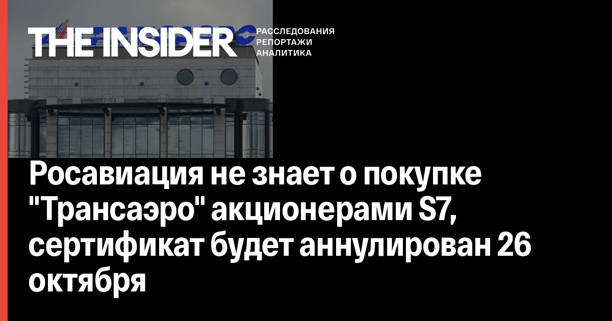 Росавиация не знает о покупке "Трансаэро" акционерами S7, сертификат будет аннулирован 26 октября