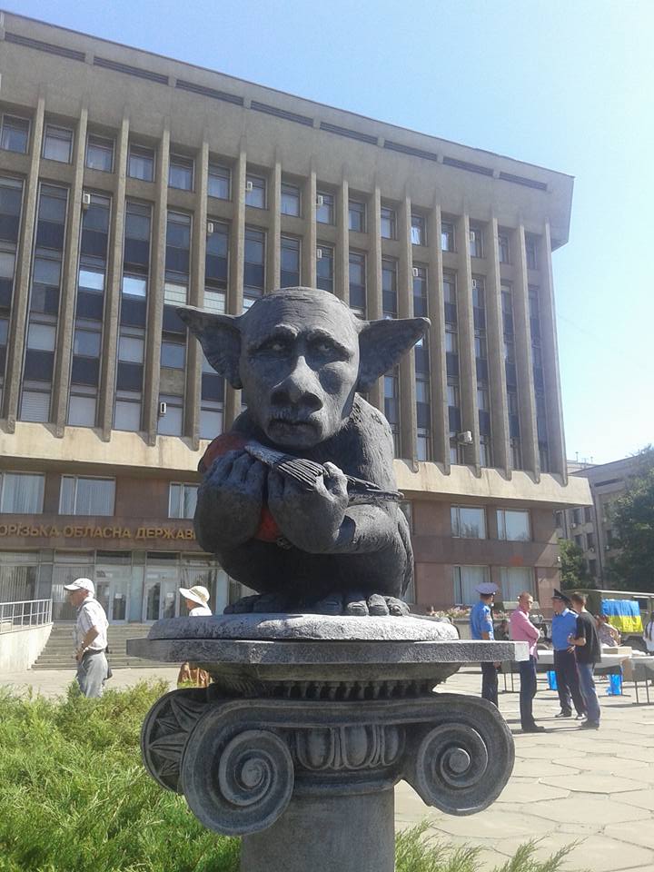 И Путин со снегирем, и Говорящая лошадь Лавров участвуют в волонтерских ярмарках, которые проводятся в Запорожье. Памятник Путину недолго простоял у здания обладминистрации, и Максим Дрозденко надеется, что он будет установлен там постоянно: