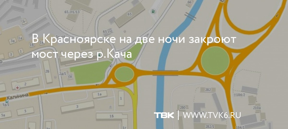 В Красноярске продолжаются работы на уже открытом мосту через р. Кача в районе улиц Калинина-Маерчака-2-ая Брянская. На две ночи, 24 и 25 октября (с 22:00 до 06:00), здесь снова перекроют движение.