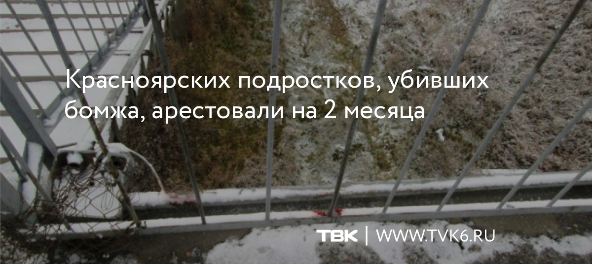 Двух красноярских подростков, которые 22 октября, «чтобы развлечься», сбросили бомжа с пешеходного моста в мрн. Солнечный, арестовали на 2 месяца. Такое решение вынес суд Советского района города Красноярска 23 октября.