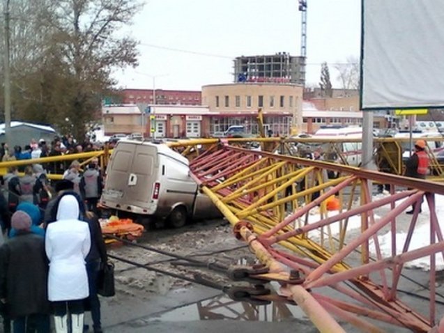 Ранее сообщалось, что при падении башенного крана погибли двое. Строительный кран раздавил две машины, упав на проезжую часть.