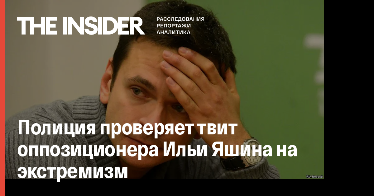 Сотрудники управления по противодействию экстремизму МВД (Центр «Э») проверяют твит оппозиционера Ильи Яшина на экстремизм. Об этом Яшин написал на своей странице в фейсбуке.