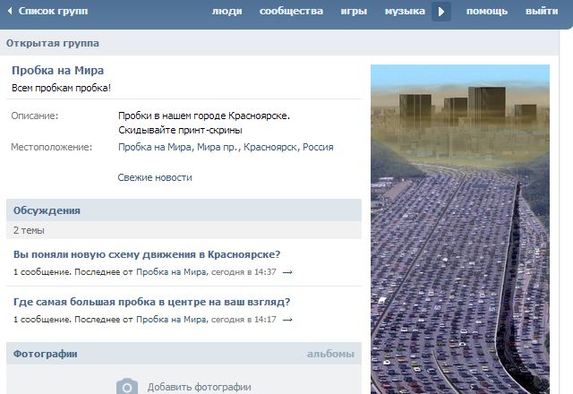 В социальной сети «ВКонтакте» сегодня, 27 октября, появилось новое сообщество «Пробка на Мира» о дорожных проблемах Красноярска.
