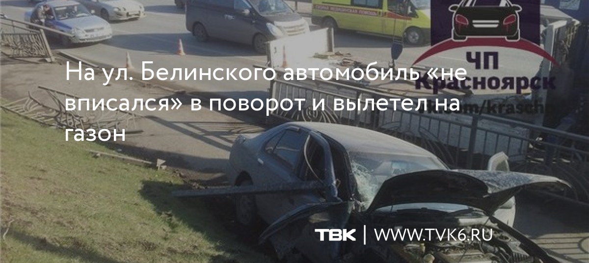 На ул. Белинского в Красноярске произошло серьёзное ДТП. Иномарка, двигаясь вниз от Медакадемии, на повороте вылетела на газон, пробив ограждение.