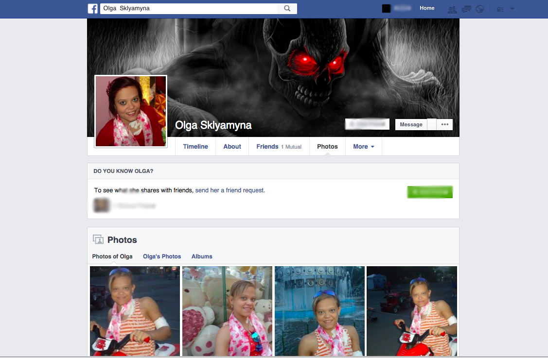 Страница Ольги в ФБФото: https://www.facebook.com Надо сказать, что «солнышко в коляске» была той еще оторвой. Предаваться порокам ей не позволяло здоровье, но жила она по принципу «любой кипеш кроме голодовки». Пить не пила, но диету и щадящий образ жизни соблюдать отказывалась. «Один раз живем» — любимые слова Оли. Лет пять назад, наглядевшись на успехи подруги Светки в паралимпийском спорте, Ольга занялась тяжелой атлетикой и даже успела получить какой-то разряд. Что думал ее тренер, и думал ли он вообще — неизвестно, но тягать штангу с ее патологиями и одной почкой, конечно, было нельзя. Когда она завела страницу на Facebook, меня поразила мрачная картинка с кошмарным чудовищем, которую она поставила в качестве обложки. Также совсем не вязались с ее вечной улыбкой фильмы ужасов, которые она обожала. Теперь я понимаю, что плохо знал Олю, да и не пытался узнать ближе, вполне удовлетворяясь ролью «скорой материальной помощи».