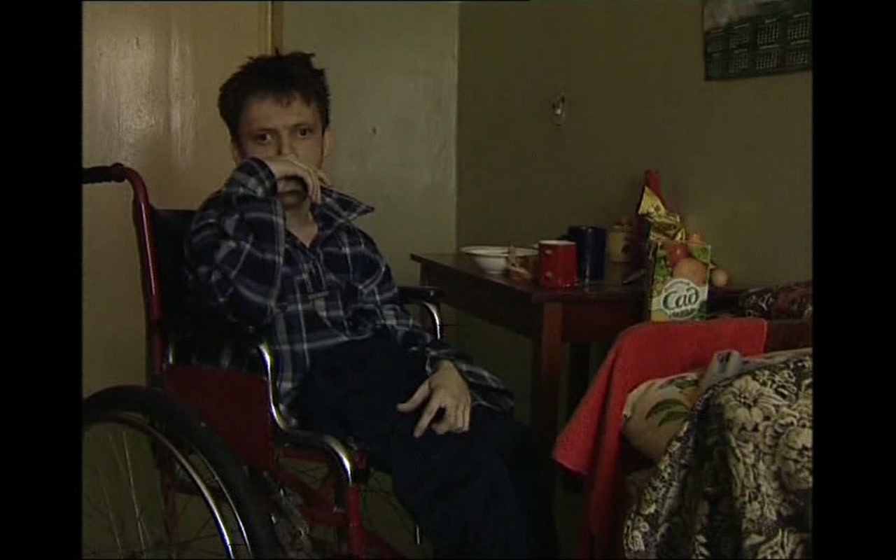 Дима Саяпин в фильме Андрея Лошака «Дети коридоров», программа«Профессия-репортер», НТВ, 2006 год Тогда, в 2006-м, мы вместе с Олей все-таки съездили в сердобский Дом ветеранов, перспектива попасть в который мрачной тучей висела над ее будущим. Там я познакомился с несколькими выпускниками интерната, в свои 18–20 доживавшими жизнь среди стариков и калек. Дима Саяпин был лучшим учеником в школе. Ему нравилось право, он очень хотел продолжать образование, но из-за сильнейшей формы ДЦП его никуда не взяли, отправив «на списание» в дом престарелых. Когда он начал отвечать на вопросы — маленький, скрюченный человечек с умными глазами — я поразился его типично интеллигентской манере говорить и рассуждать, непонятно откуда взявшейся у мальчика, выросшего в интернате.