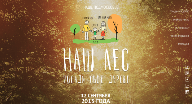 Мы разработали дизайн-концепцию официального сайта акции «Наш лес. Посади свое дерево», которая прошла 12 сентября 2015 года. Проект курировался Правительством Московской области.