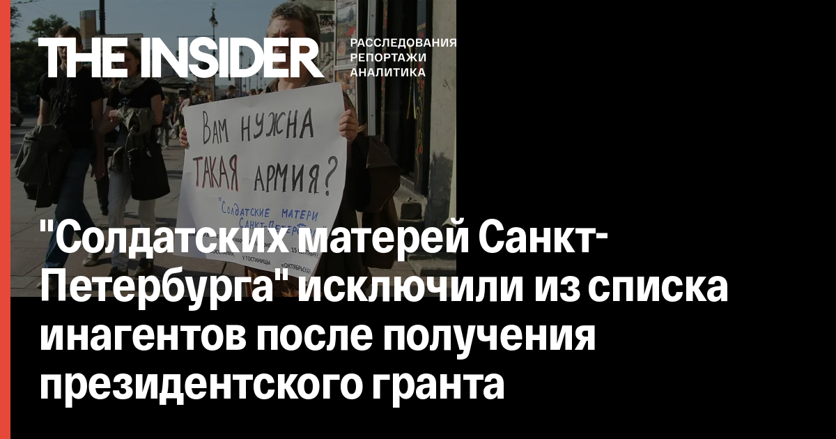 "Солдатских матерей Санкт-Петербурга" исключили из списка инагентов после получения президентского гранта
