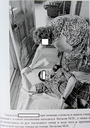Красноречивых совпадений в этой истории действительно много: например, отец погибшего вспоминает, как обнаружил перед воротами у дома Таравковых следы крови, и попросил следователя проверить ее образцы. На следующий день на дороге в Липовом переулке заменили гравий. При этом, по словам собеседника «Медиазоны», один из родственников Таравковых работает в управляющей компании, которая обслуживает эту проселочную дорогу. Покойник в суде За два с половиной года, прошедших со дня смерти Максима, его родители-пенсионеры, получая 24 тысячи рублей в месяц на двоих, потратили на адвокатов более 400 тысяч. По их словам, дело по факту убийства закрывалось семь раз, и каждый раз следователь, в производстве которого оно находилось, выписав постановление о его прекращении, переходил на службу в другой город. «Мне предпоследний следователь говорил: "Вы знаете, вы ничего не добьетесь, над нами тоже начальство, и мы не можем ему наперекор идти. Давайте я позову Таравковых, и вы пойдете на примирение". Но я отказываюсь, говорю, какое примирение, не дай бог вам испытать то, что испытываю я. Мне не нужны никакие деньги, мне нужна справедливость», — объясняет Литасова. «У нас недобор тут страшный следователей, как черт от ладана бегут от апшеронского следственного отдела. Потому что когда сюда приходят, сразу это дело, родители же не оставляют его», — добавляет журналист Симкина. «В ходе расследования […] получены согласующиеся между собой доказательства, которые в своей совокупности подтверждают показания Таравковой [Любови] и Таравкова [Игоря] об обстоятельствах причинения смерти Литасову. [Доводы] потерпевших и их представителей о непричастности Таравковой [Любови] и Таравкова [Игоря] к причинению смерти Литасову и о причастности к данному событию Таравкова [младшего], о наличии на теле Литасова повреждений, характерных для выстрела из какого-либо оружия, опровергнуты […] Исходя из указанных обстоятельств уголовного дела, виновность Таравкова [Игоря] и Таравковой [Любови] в совершении преступления [по статье об убийстве] не нашла своего подтверждения, так как Литасов, действуя неожиданно, предварительно взяв с собой топор в качестве орудия преступления, являясь физически более крепким, нежели супруги Таравковы, внезапно напал на них, чем застал их врасплох, при этом, высказывая угрозы убийством, нанес несколько ударов по различным частям [тел Таравковых], и, продолжая осуществлять свой преступный замысел, направленный на убийство обороняющихся, споткнулся и упал на пол, при этом не выпуская орудие из рук, стал активно сопротивляться, продолжая тем самым сохранять реальную угрозу для супругов Таравковых. В ходе борьбы [Таравкова выхватила топор] и она, находясь в эмоциональном состоянии, опасаясь за свою жизнь и за жизнь Таравкова, нанесла не менее двух ударов по голове Литасова, в результате чего нападение последнего было подавлено», — говорится в одном из последних постановлений об отказе в возбуждении дела, каждое из которых точь-в-точь похоже на шесть остальных. Самое свежее из них пока находится на рассмотрении в президиуме Краснодарского краевого суда. Отец убитого пытался привлечь внимание властей к этому делу, встав в одиночный пикет, но это не помогло — полицейские задержали его и оформили протокол о нарушении порядка пикетирования, а