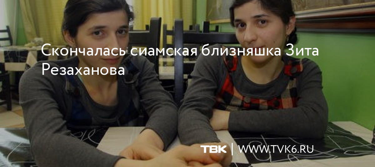 Зита Резаханова, одна из разделённых в 2003 г. сиамских сестёр-близнецов, скончалась в возрасте 24 лет после продолжительной болезни. Сообщает ТАСС со ссылкой на «Вечернюю Москву».
