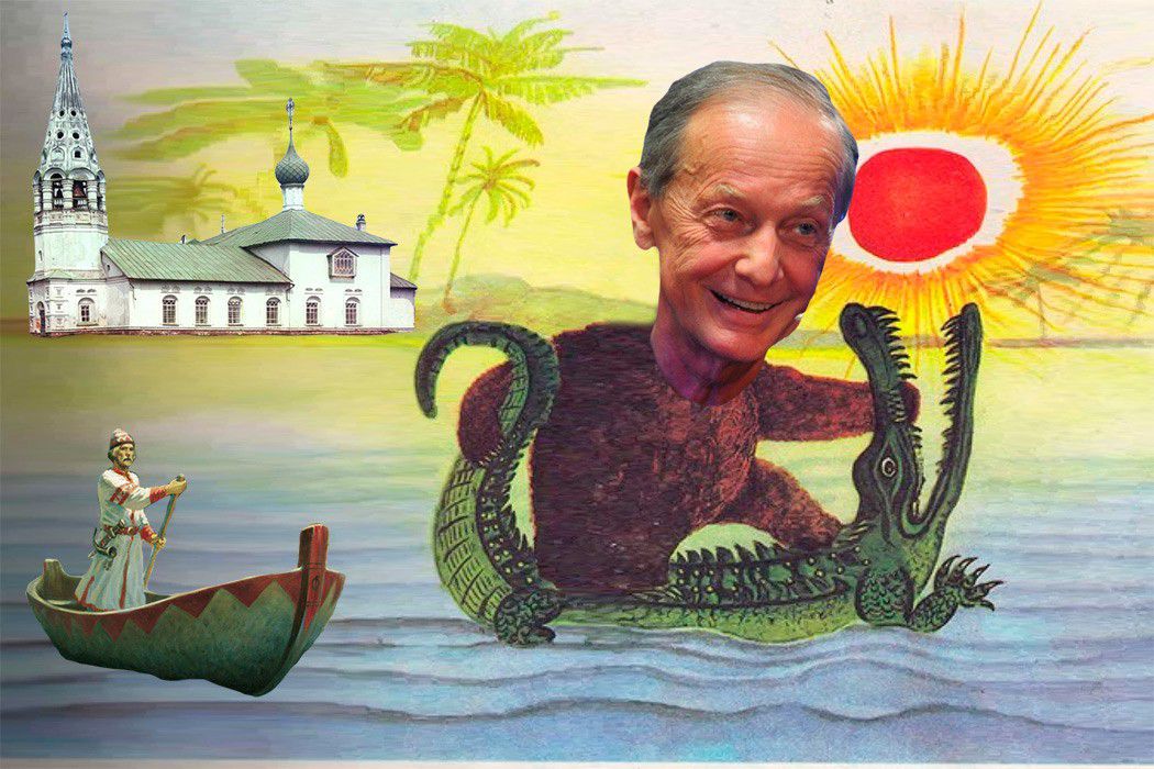 На экране плывёт какая-то ладья, в ней плывёт загорелый Задорнов в сетчатой кофте, какую носят рыбаки на Кубе или муж Наташи Королёвой Тарзан. Сатирик стоит в углу и смотрит по телевизору на свои ключицы, ему нравится фильм. Он говорит, что жизнь прежде была отстой: все поклонялись Солнцу и не было гей-парадов. Главная беда и напасть, которая беспокоит Задорнова, — Солнце. Они все перестали уважать Солнце. Что-то пошло не так. «Радуга — это не символ пидарасов, — переходит он почти что на крик. — Это солнечного луча разлом на цвета. Свастика, которую эксплуатируют, — это тоже знак Солнца. Европа всегда и везде пытается унизить Солнце». Горе, горе, крокодил солнце в небе проглотил!