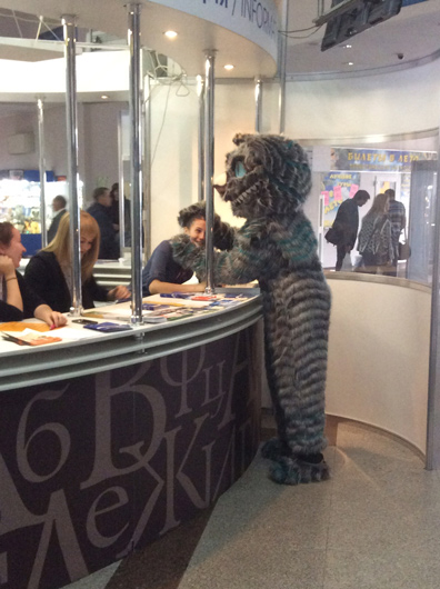 В холле у информационного окна стоит странный персонаж, сбежавший из советской анимации, немного смахивающий на северного Матроскина и пока не определившийся, на какой круглый стол он хочет пойти и о чем предстоит ему в этой жизни читать. Как только он пересечет зону ресепшена, то попадет в круговорот круглых столов, презентаций, выставок и дебатов. Отдохнуть он сможет в очереди за кофе или обедом, но лучшее укрытие — ретрокинотеатр или кафе на верхних этажах комплекса.