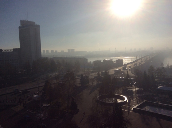В Красноярске почти нет одинаковых домов, и в центре уживаются пустыри, высотки и деревянные домики в один этаж. Мимо них едет добрый таксист, который знает про книжную ярмарку в родном городе. Таксист рассказывает про остров совсем рядом с городом, через каменный мост, там заповедник и парки, возможно, остались и звери. Отец таксиста живет в маленьком деревянном домике на земле, живет там уже много лет, и вдруг ему говорят: «Здесь будет дорога, так что не стройся тут особенно». После расселения обещают квартиру, не в центре, но все же. «Что ему делать в этой квартире?» — сокрушается таксист и показывает на дорогу. «Тут раньше был аэропорт, прямо где мы едем, в центре города, и вот представь — мы на той взлетной полосе сейчас». Потом добавляет: «А метро у нас так и не построили, и дорога — сам видишь». Едем — впереди острые углы и круглые балконы; все кварталы настолько разные, что сомневаешься, в одном ли ты сейчас городе. Гостиницы тут называются «Сибирь» и «Красноярск», а пароходство «Енисейское». Только остановишься — понимаешь: вокруг простор, между домом и следующим кварталом — воздух и небо, в размеры которых веришь не сразу. Подъезжаем к КЦ «Сибирь» — туда привезли книги со всей России и школьников со всего Красноярска, остальные добираются по своей воле.