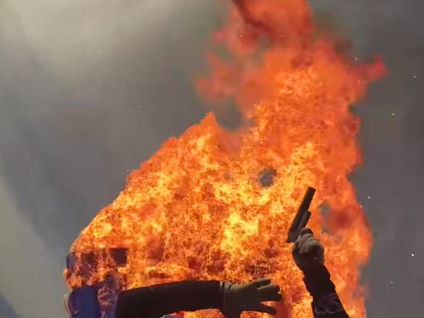 Спортсменка подожгла свой парашют с помощью выстрела из сигнального пистолета. Купол мгновенно сгорел, поэтому она раскрыла запасной парашют и благополучно приземлилась на землю. Трюк был выполнен в небе над Аризоной.