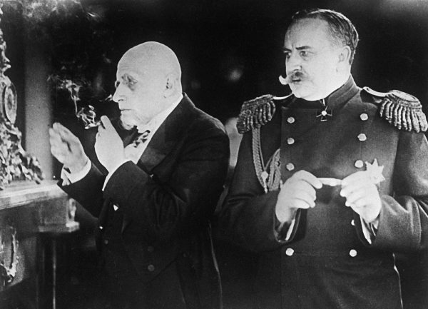 Кадр из кинофильма «Белый орел» режиссера Якова Протазанова. Сановник — Всеволод Мейерхольд, губернатор — Василий Качалов. Производство киноорганизации «Межрабпомфильм», 1928 год.Фото: РИА Новости Во время этой картины — два происшествия: истерика с дамой в зрительном зале; это значит, что ввиду присутствия Горького играют как следует, и результат — истерика; другое происшествие — С.Г. Яров неудачно спрыгнул и повредил себе ногу; вызывали врача.