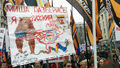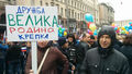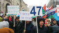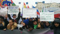 Как отмечает корреспондент "Граней", на плакатах и транспарантах не упоминалась российская военная операция в Сирии.