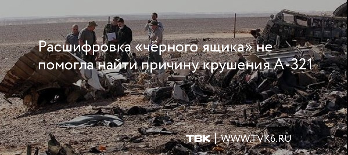 Информация, полученная после расшифровки «чёрного ящика» потерпевшего крушение в Египте лайнера Airbus A-321, на данный момент не помогла продвинуться в установлении причин авиакатастрофы. Об этом заявили источники газеты «Коммерсант».