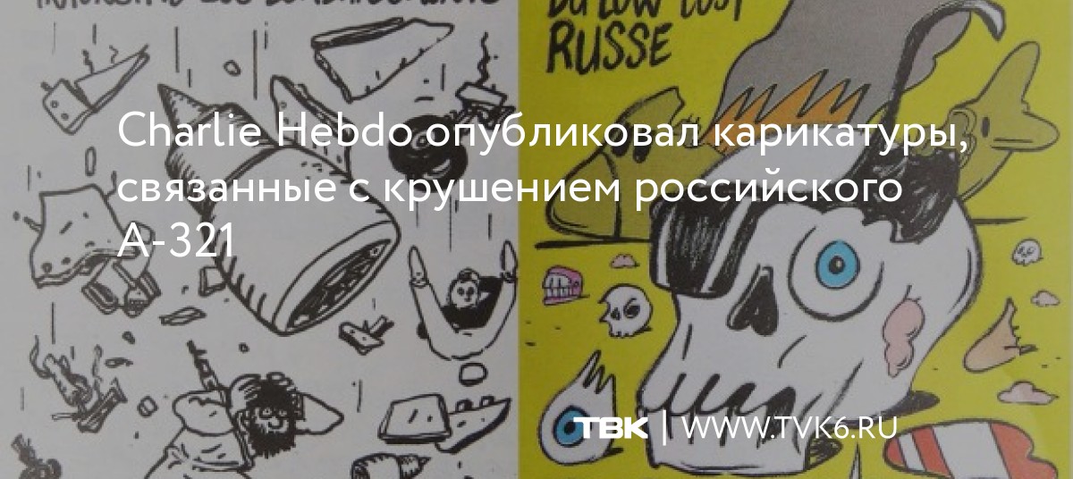 Французский сатирический еженедельник Charlie Hebdo опубликовал карикатуры на разбившийся российский самолёт А-321 на Синайском полуострове в Египте, сообщает РИА Новости.