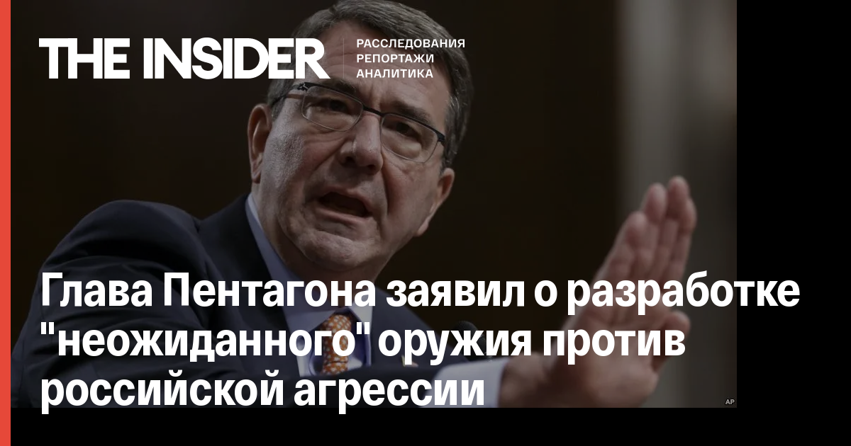 Глава Пентагона Эштон Картер анонсировал появление нового «неожиданного» оружия против российской агрессии. Об этом Картер заявил на национальном военном форуме в президентской библиотеке имени Рональда Рейгана в Калифорнии, его слова цитирует AFP.