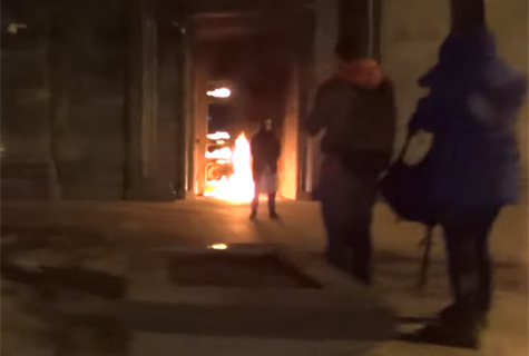 Петр Павленский поджег дверь ФСБ