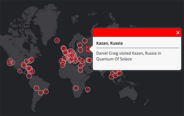Еще одну интересную инфографику сделала The Guardian: в ней собраны все путешествия Джеймса Бонда.
