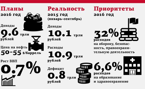 В структуре расходов главным бенефициаром бюджета-2015 оказалась оборона: расходы на нее за последний год выросли с 3,5 % до 4,5 % ВВП. Снизились траты на образование и медицину. Этот курс продолжится и в 2016 году.