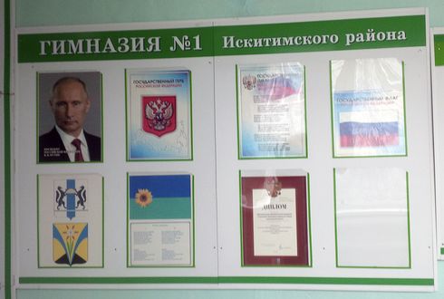 Портрет Путина каждое утро встречает детей, приходящих в школу, Новосибирская область, 29 октября 2015 года