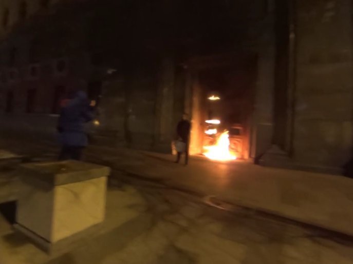 Петр Павленский у здания ФСБ кадр видео Художник Петр Павленский поджег дверь здания ФСБ.