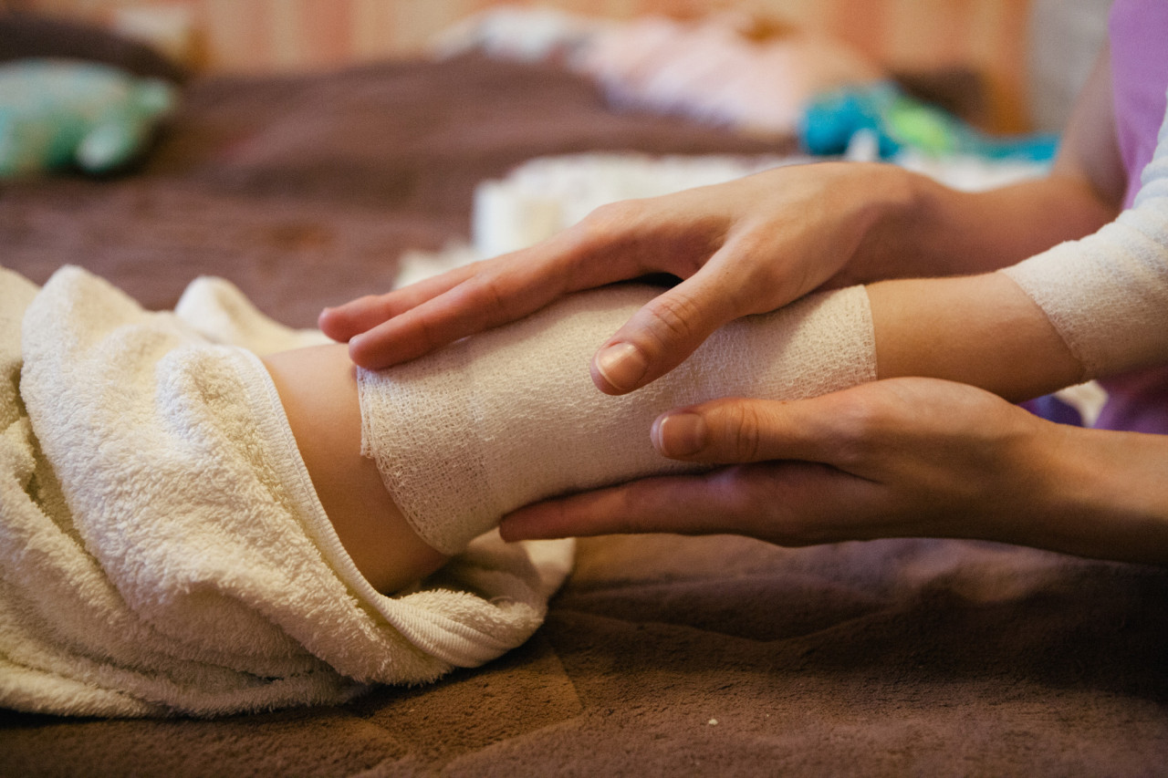 Чтобы Оля не расчесывала ногу, пришлось пойти на крайние меры и надеть ей съемный гипс. Это хоть немного сберегает кожу на ноге. Родители надеются, что, когда она подрастет, то поймет, что лучше этого не делать, и перестанет расчесывать ногу. На процесс заживления уходит месяца два.Фото: Наталья Булкина