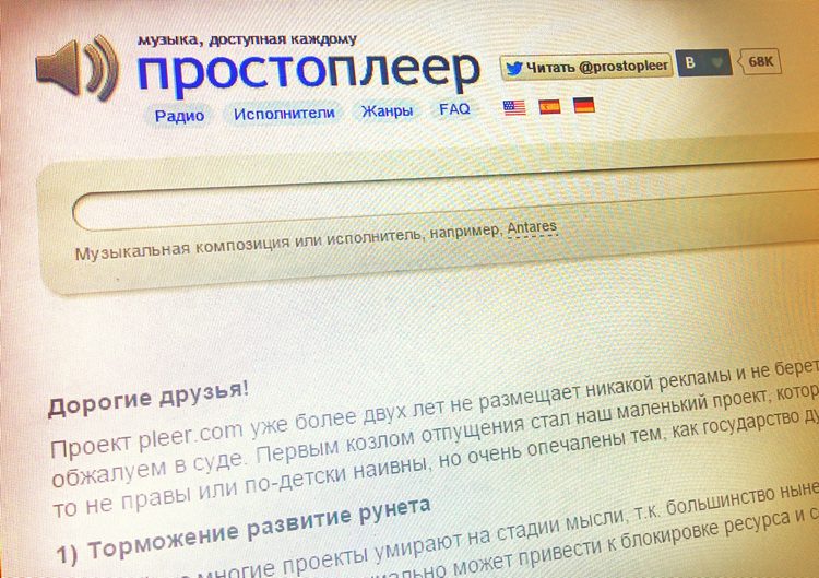 Приговоренный к «вечной блокировке» портал Pleer.com опубликовал обращение к государству
