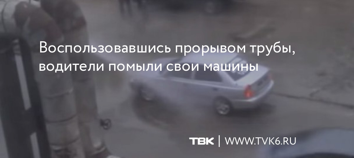 Воспользовавшись прорывом трубы, водители помыли свои машины