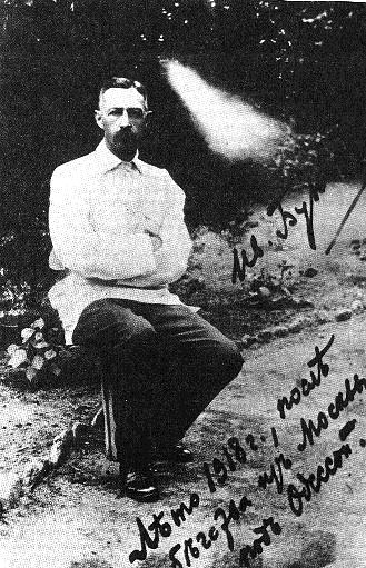 И.А. Бунин. Фотография с его надписью: «Лето 1918 г., после бегства из Москвы, под Одессой» По мере развития разрухи в головах нарастают и ее проявления на улицах: