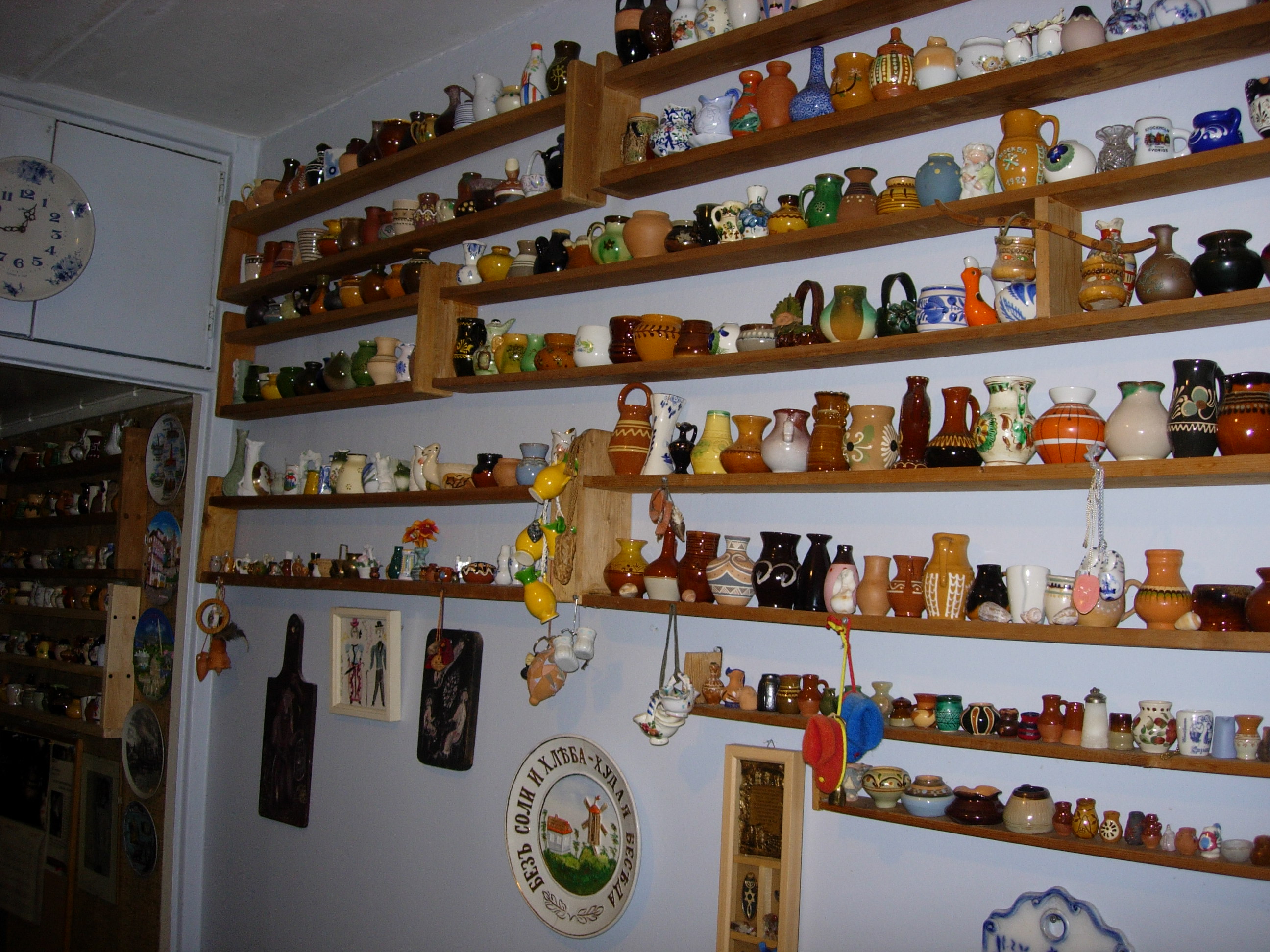 – Это собирала моя мама. Коллекционер – это же больной человек, он собирает все. Еще моя мама собирала маленькие горшочки величиной с полпальца, вот на кухне их больше двух тысяч. А она знала эти горшочки наизусть, и если я или кто-то из друзей приносил какой-то горшочек, она говорила: нет, этот у меня есть. То есть все они были ей родные, и, конечно, надо было их мыть, был специальный банный день для горшочков. Дело непростое, но по-своему замечательное.