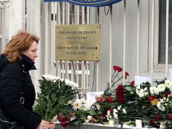 Тем временем москвичи продолжают нести цветы к посольству в память о жертвах терактов. Жители российской столицы начали нести цветы к зданию дипмиссии в ночь на 14 ноября. Пришедшие зажигали свечи. Утром у ограды дипмиссии появился импровизированный мемориал, на который люди оставляют свечи и иконки, а также записки со словами поддержки и соболезнования.