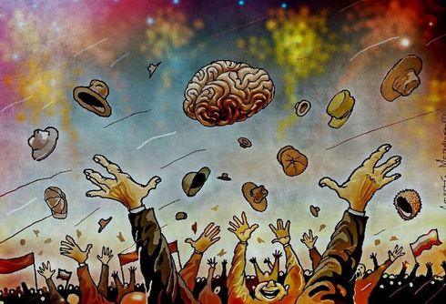 Впрочем, слово «философия» у него тоже, как выяснилось, не в почете. Рисует же Алексей «не сюжетно, а содержательно»: «Люблю сказки, басни — поэтому много таких сюжетов. Ну, и потом власть сейчас так бредит, что я за ними просто не успеваю. Там есть такие персонажи и сюжеты, что уже и не нарисуешь карикатуру злее и острее (происходящего в реальности)».