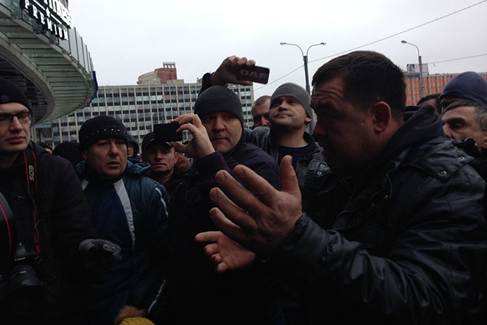 Систему взимания платы «Платон» ввели, чтобы пополнить Федеральный дорожный фонд на ремонт трасс. Как сообщали в Росавтодоре, за разрушение дорожного покрытия должны платить те, кто наносит ему «наибольший ущерб». Систему разработала и эксплуатирует РТИТС, на 50 % принадлежащая Игорю Ротенбергу, сыну председателя совета директоров ООО «Стройгазмонтаж». Сообщалось, что РТИТС будет получать 10,6 миллиарда рублей в год. Систему «Платон» уже прозвали «сбором Ротенберга». Существуют же ГОСТы на дороги. Если мы идем без перегруза, у нас нет нарушений, как мы их разрушаем?При этом перевозчики уверяют, что на поврежденных дорогах они даже «не попадают» в колею, а значит, она образуется в первую очередь не от грузовиков. — Существуют же ГОСТы на дороги. Если мы идем без перегруза, у нас нет нарушений, как мы их разрушаем? Как они тогда строятся? По ним и ходить нельзя? — кричали Пепеялеву собравшиеся. Кроме того, по словам владельцев грузовиков, из-за новой системы перевозчики понесут серьезные убытки, а некоторые могут и вовсе потерять прибыль. Например, говорят предприниматели, за то, чтобы отвезти контейнер в Москву, они получают 36 тысяч рублей. При этом 18 из них уходит на топливо, 2 — на еду водителю, 8 — на его зарплату, а теперь еще 6 — РТИТС. — И того владельцу грузовика стоимостью от 2 и выше миллионов рублей за четыре дня остается доход 2 тысячи рублей. Из них нужно погасить кредиты и заплатить налоги. То есть вы хотите, чтобы я работал в минус?! — разгневанно заговорил мужчина в серой шапке, параллельно снимая представителя РТИТС на телефон. — Я вам привожу конкретные цифры, а ваши слова подобны туману.
