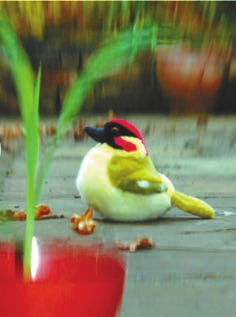 на игрушечной птичке, так что