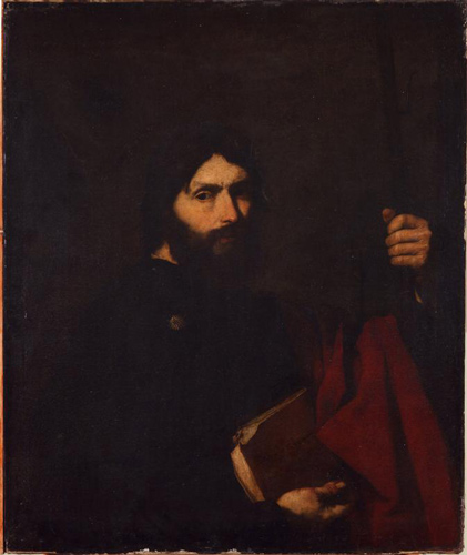 © Фонд Роберто Лонги Хусепе Рибера «Святой Фома» А этот персонаж немного хуже сохранился, но тоже очень выразительный и самый из них необычный. Это святой Иуда Фаддей, который и вовсе отворачивается от зрителя в таком вот странном полуобороте, сидя и придавая этой компании опять же какой-то оттенок жизни, а не скучной, плоской постановки.
