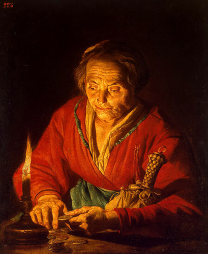 Но пойдемте в другую сторону… Вот совсем иной подход. От этого позднего, темного, мрачного неаполитанского периода здесь, в общем, ничего нет. Это Матиас Стомер, который проработал в Риме в ранние годы своего ученичества, он тоже приехал из Голландии, и все они, как такие молодые и подверженные исканиям новых путей в живописи художники того времени, увлекались, конечно, Караваджо, который был своего рода идеалом. Хотя и не всегда положительным идеалом, а, скорее, идеалом, ведущим довольно странный образ жизни.