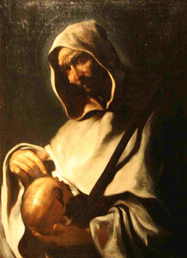 Здесь Джачинто Бранди, изображающий нам картезианского монаха, возможно, основателя Ордена святого Бруно, в таком вот монашеском облачении. Опять же такая попытка передать разного рода светотеневые эффекты. И, конечно же, видно, что художники разные и Бранди совсем не так пишет лицо, как Стомер: хотя тот же самый морщинистый типаж, совсем иными приемами это передается.