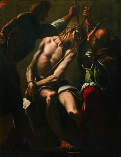© Фонд Роберто Лонги Маттиа Прети «Сусанна и старцы» А здесь Пьер Франческо Мадзукели, прозванный Мараццоне: композиция, которая сделана под очевидным влиянием тициановской поздней работы «Коронование терновым венцом», но с примесью этого караваджовского света и постановки фигур в такой вот темной студии.