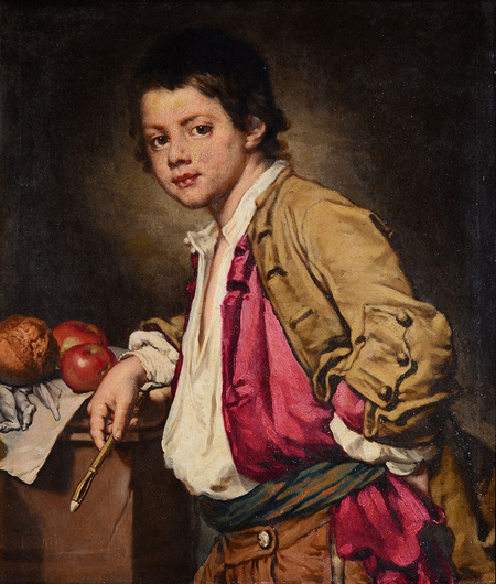 Экспозиция наша построена таким образом, что с той стороны висят люди, которые относятся к предшествующему периоду, еще до развития в Риме всей этой ситуации, но об этом чуть позже. Хочется отнести ощущение этого натурализма, который шокировал зрителей. Сегодня по этому поводу возникают различные теории: пользовался ли он камерой-обскурой, для того чтобы дать вот такую вот систему освещения, например, перерисовывал ли он буквально контуры предметов. Видно, что вот это плечо, выступающее сюда, дает такие же перспективные искажения, как бывает, когда снимаешь на какой-нибудь длиннофокусный объектив фотоаппарата. Ну и кроме того, конечно, нет, потому что, видите, плечо переписано, он менял композицию. Она известна в двух вариантах, висит в Лондоне второй такой же мальчик, который уступает по качеству, и Лонги, долго сравнивая их, пришел к выводу, что его версия лучше. В общем, в этом есть не только такой коллекционерский азарт, но и довольно тонкая наблюдательность, потому что так примерно оно и есть.