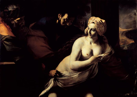 © Фонд Роберто Лонги Ланфранко «Давид с головой Голиафа» С этой стороны у нас — собственно, у Лонги — висят лица, которые продолжают эту историю в чуть-чуть более поздний период, потому что вслед за Римом Караваджо оставляет большой, неизгладимый след в живописи Неаполя. Он бежит туда под влиянием событий своей жизни, он убивает на дуэли человека и вынужден скрываться от папского возмездия. Убегает туда и там, тоже написав пару больших алтарных картин, производит такое впечатление на местных художников, что они все начинают писать темные караваджовские картины. Перед нами здесь Маттиа Прети, ставший потом важнейшим художником, писавший на Мальте множество алтарей и вернувшийся потом обратно в Италию. Вот здесь, в общем, тоже все очевидно. Вот это направленное освещение, которое выхватывает самые натуральные части тела Сусанны. Это оказалось настолько шокирующим, что впоследствии картинка была закрашена, Сусанна была одета, а реставраторам пришлось расчищать ее обратно до первоначального состояния.