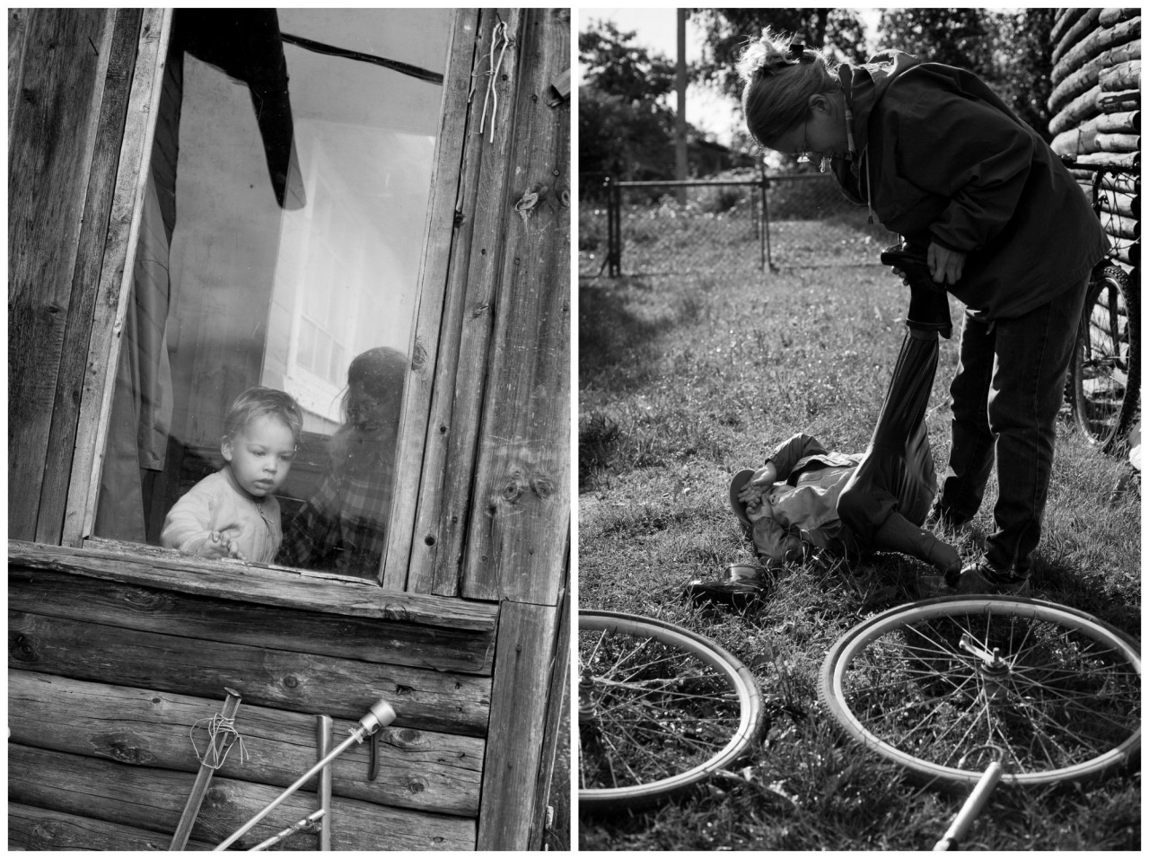 Слева: Никита любит животных. Однажды в деревне петух приземлился ему на плечо и начал клевать голову. После этого случая Никита стал осторожней. Справа: В деревне. Ася и Никита.Фото: Алексей Аксёшин
