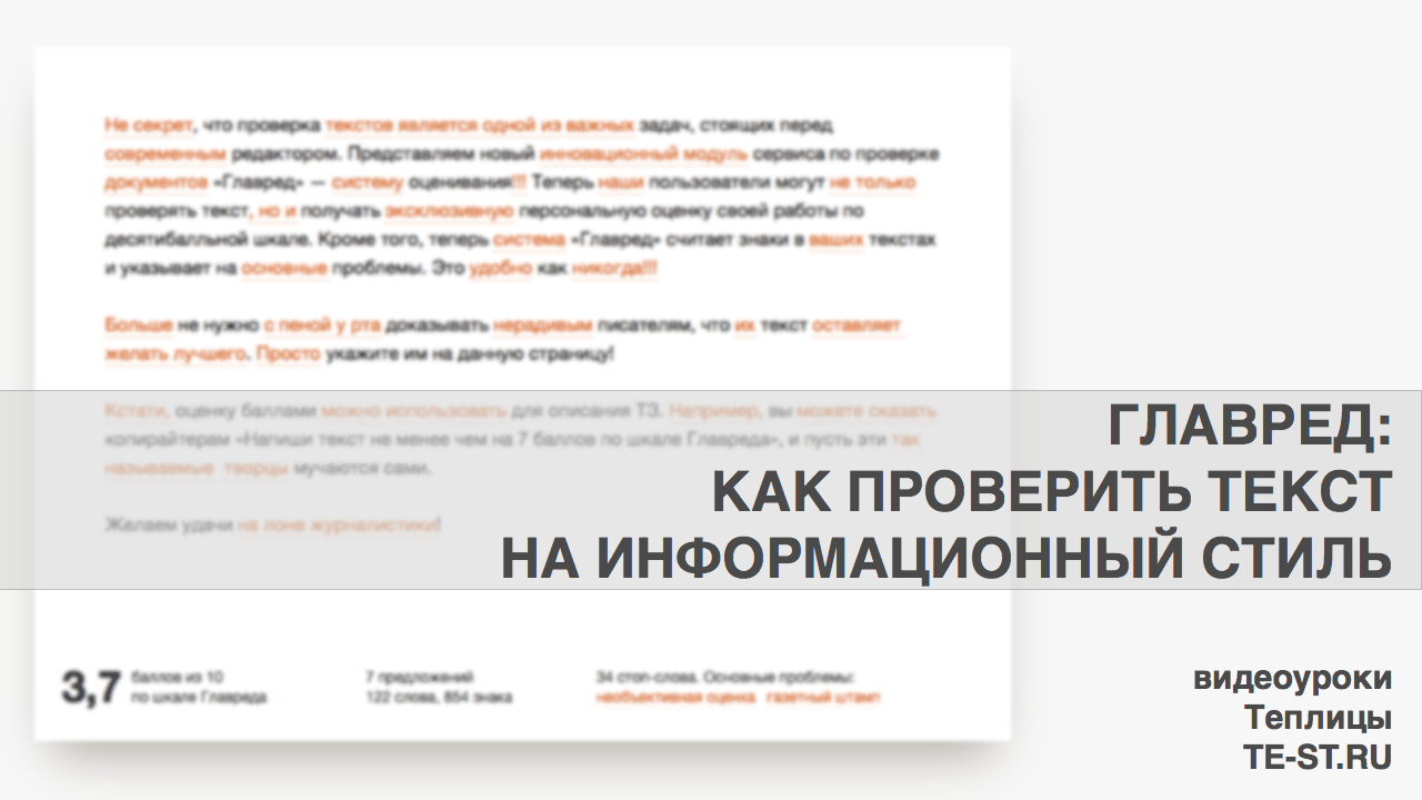 Видеуроки Теплицы: как найти и убрать стоп-слова из вашего текста с помощью сервиса Главред